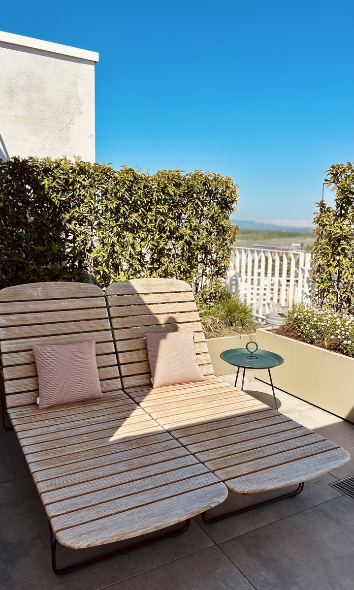 Heraustreten. Durchatmen. Weitblicken. In unseren begrünten Rooftop-Garden mit dem Blick über die Dächer von Freiburg lässt es sich prima aushalten. Egal, ob Sie unter dem Lamellendach arbeiten, unseren vier Bienenvölkern beim Summen zuhören oder sich zum Sonnenbaden auf unseren Liegen ausstrecken. Genießen Sie die Aussicht und die frische Luft des Schwarzwaldes am Morgen bei Ihrem Kaffee oder Work-Out - oder am Abend mit der Familie oder Freunden bei einem Glas Wein, vielleicht auch erst, wenn die Lichter die Stadt erhellen und die Sterne am Himmel funkeln. Als unser Hausgast können Sie diesen wunderbaren Ort jederzeit genießen!